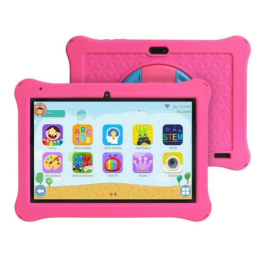 [Safe Play] Durable 10.1" Youngsters' Tablet with Case - for Android 13, 32GB for RAM, IPS Screen Protector, WiFi, Camera, Preloaded Educational Apps & Games, Parental Control, Type-C Charging - Pink Silicone for Youngsters