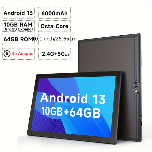 [10.1 Inch Quad Core Tablet] BAKEN 10.1 Inch Tablet, Androild 13 Tablet, 7GB+64GB Quad Core 5G Dual Wifi6 Tablet, HD Touchscreen 1280*800 IPS Stable Performance Tablet.