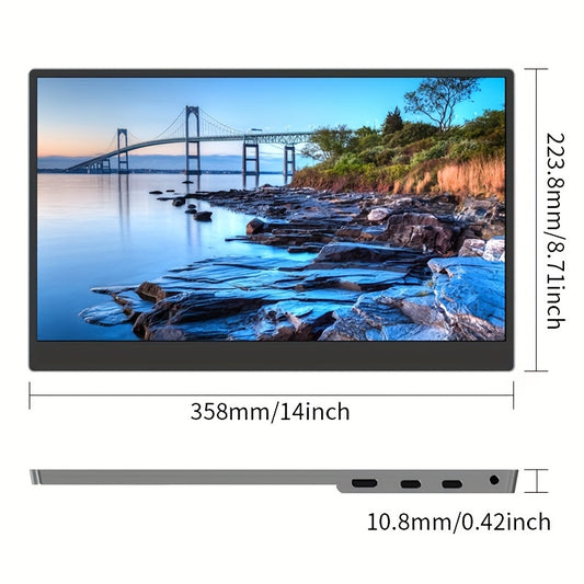 15.6inch FHD 1080P IPS HDR Portable Monitor - USB C Gaming Ultra-Slim Plug Play External Display For Laptop PC Phone Mac With Speakers