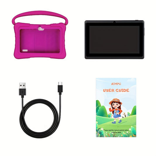 7-Inch Tablet Designed for Children, Featuring 32GB of Storage, 2GB of RAM, Running on Android 11.0. It Includes 2.4G Wifi, GMS, an Eye Protection Display, Parental Controls, Educational Applications, Dual Cameras, a Shockproof Case, And Games.