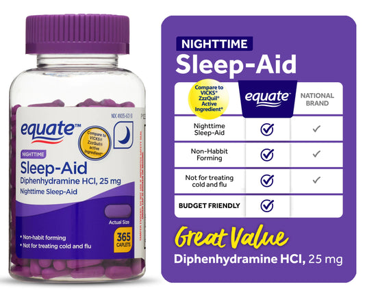 Diphenhydramine Hcl 25Mg Caplets for Nighttime Sleep Support, 365 Count