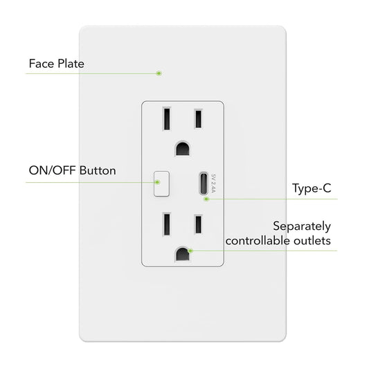 Electrical Outlet In-Wall Smart Wi-Fi with High Speed 2.1A USB Port